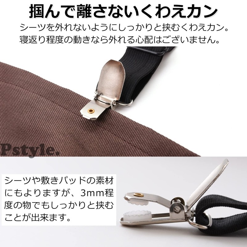 - (Grips and keeps them from coming off) Depending on the material of the sheets and bed pads, even with 0.1 inch (3 mm) items can be firmly clamped