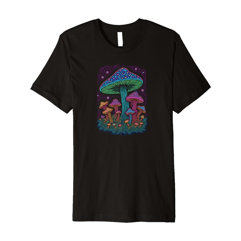Psychedelic Glowing Mushroom Art | Blacklight Forest Fungi Premium T-Shirt