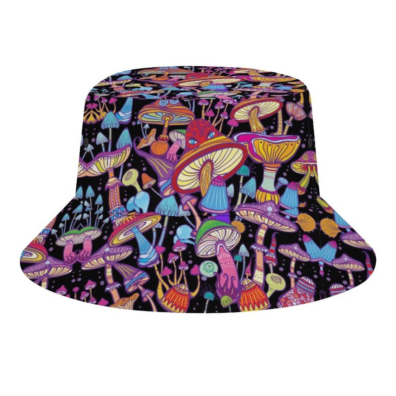 Psychedelic Hippie Mushrooms 60s Bucket Hat for Women Men Packable Fisherman Hat Sun Cap Travel Outdoor Beach Caps