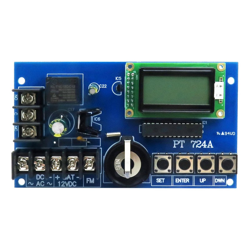 Digital Timer PT724A are extremely versatile 24 Hour 365 Day Event Timers designed to support a wide range of applications. Such applications include: Home and Building Automation, Security, Access Control,Lighting Control, Etc.PT724A/DPT724A/PT724AE are equipped with an independently controlled form "C" relay contact that provides many latching and/or momentary operations during a program schedule of your choice. The EE prom memory allows for programming of unit prior to/or during field installation. Events may be set for single or multiple operations on a daily and/or weekly schedule. The block programming feature enables repeating an event on any combination of consecutive days. PT724A/DPT724A/PT724AE will compensate for daylight savings time if desired. individually selected holiday exceptions can be programmed to override regularly scheduled events.