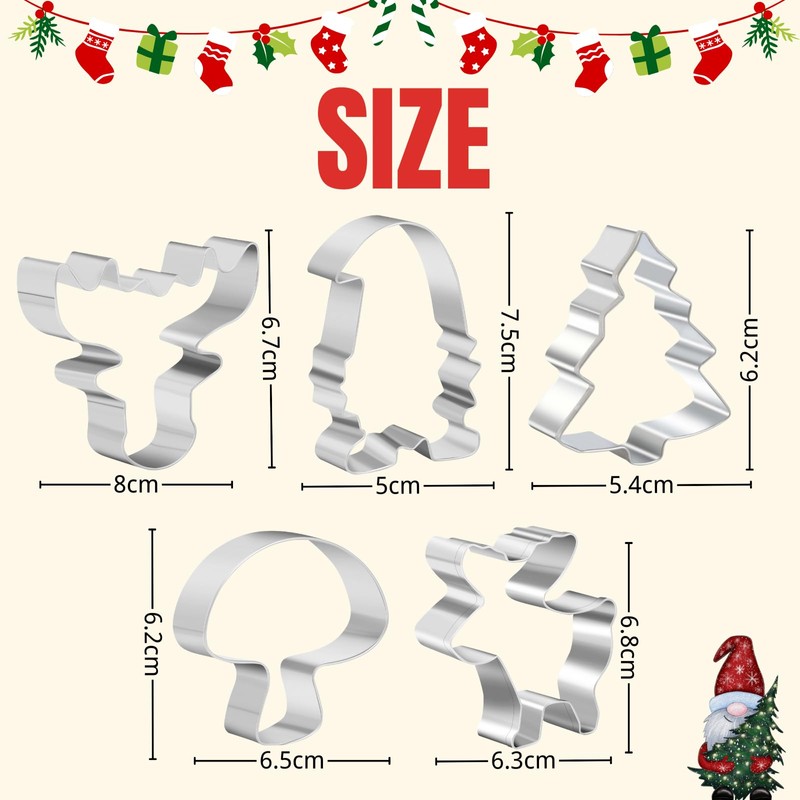 PTaizjjz Christmas Cookie Cutter Set - 5 Pieces - Christmas Tree, Gnome,Reindeer,Mushroom Holiday Cookie Cutters Fondant Biscui Cutters