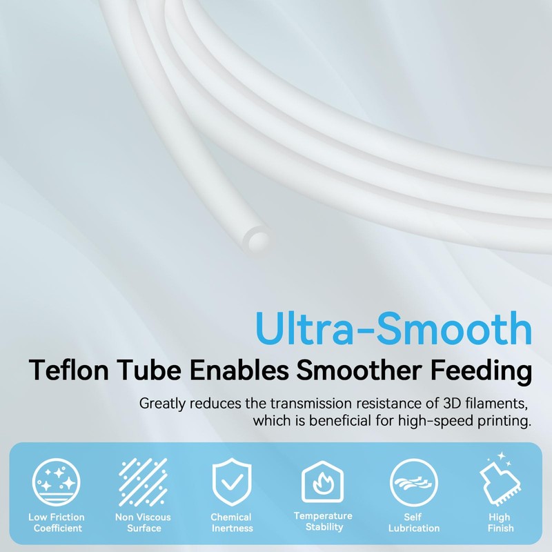 - 【Supports High Speed Printing】With a friction coefficient<0.1,its smooth surface reduces resistance,enabling high-speed and precise printing,and facilitating stable filament feeding