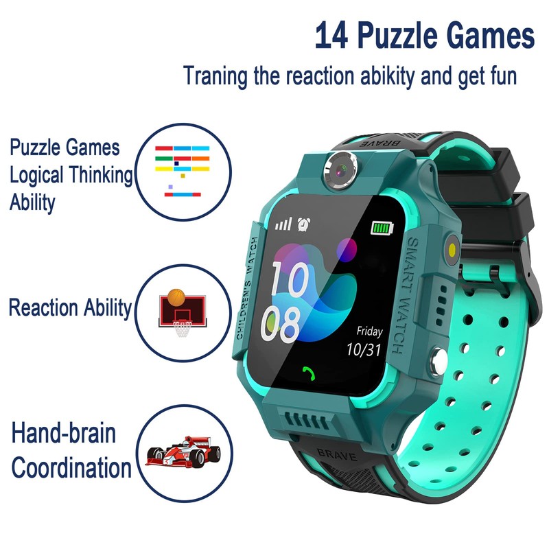 - Reloj inteligente multifunción para niños: contiene reproductor de música, 3 alarmas, relojes, temporizador, grabador de voz y reproductor, juegos, selfie-cam y fotos divertidas, cronómetro, calculadora, 4 salvapantallas de pantalla, 5 idiomas, SOS, papel pintado, dial, 10 contactos, calendario, hora y fecha, perfil silencioso, registro de llamadas, linterna, podómetro. Sustituya los teléfonos móviles, el reloj sin internet para evitar que los niños se vuelvan adictos a Internet.