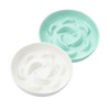 PTOBER Cat Slow Feeder Bowl Set - 2 Pcs Ceramic Cat Food Plates for Slow Eating - Double Cat Dish for Dry Wet Food - Slow Feeding Cat Bowls Whisker Friendly - Microwave and Dishwasher Safe - White and Green