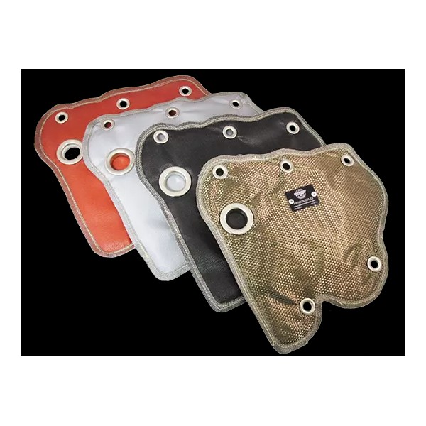 The PTP Fiberglass Turbo Blankets are constructed with a silicone impregnated fiberglass outer layer (Rated 600°F Direct Heat / 1100°F Radiant Heat) and internally insulated with high temperature calcium magnesium silicate wool (Rated 1832°F Continuous / 2300°F Peak) overlaid with a high temperature stainless steel mesh for increased durability and improved thermal resistance.