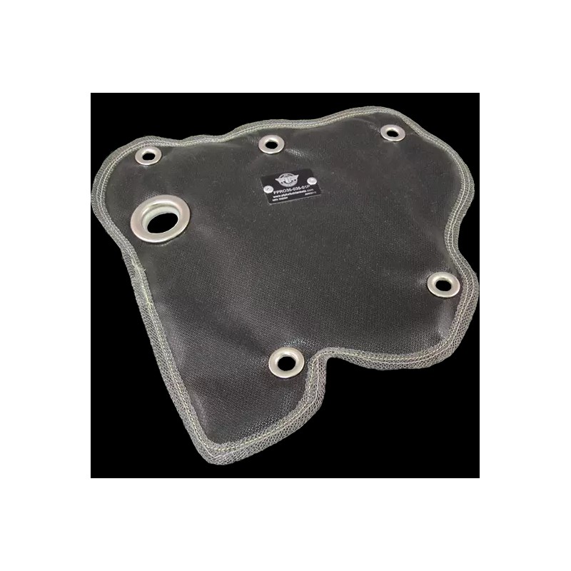 The PTP Fiberglass Turbo Blankets are constructed with a silicone impregnated fiberglass outer layer (Rated 600°F Direct Heat / 1100°F Radiant Heat) and internally insulated with high temperature calcium magnesium silicate wool (Rated 1832°F Continuous / 2300°F Peak) overlaid with a high temperature stainless steel mesh for increased durability and improved thermal resistance.