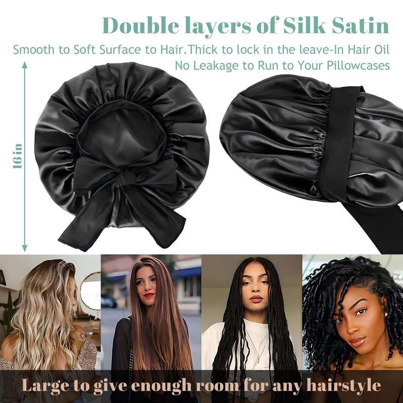 - Silky luxury with double layer technology: high-quality satin silk hood (100% polyester) reduces friction by 70% vs. Cotton The inner layer protects hairstyles, while the outer layer repels moisture - perfect as a sleep cap to protect hair.