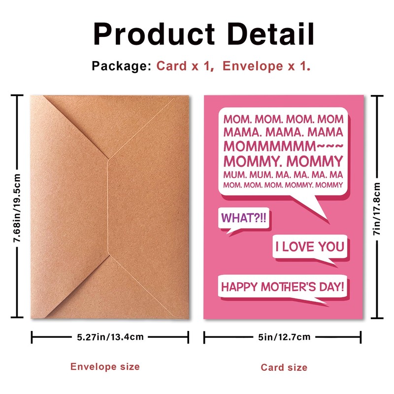 PTRUKD Funny Mother's Day Card for Mom from Son and Daughter, Card with Loving Content, I Love You, with Envelope