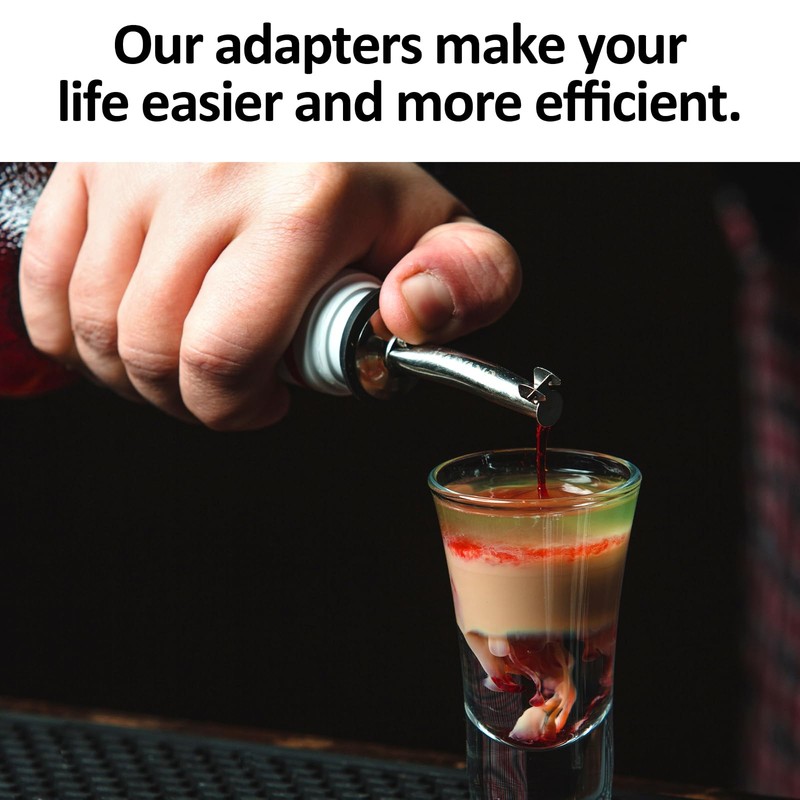 - 【Universal Wine Bottle Pour Adapter】Wine bottle pour adapters are designed to fit large bottles with a mouth diameter of up to 1 inch/25 mm. Alcohol pour spouts convert any ordinary pouring spout into a large pouring spout. Perfect for smooth and controlled pouring, these adapters eliminate the hassle of mismatched pouring spouts and bottles