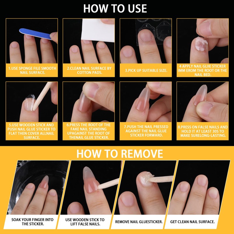 - 【Waterproof】Nail gel stickers are waterproof for daily use. Compared with glue, nail glue sticker has less wear or other reactions. But please do not soak the jelly press on nail in water excessively.