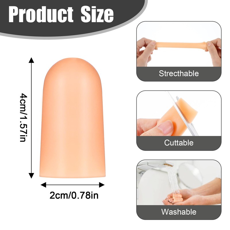 - 【Sufficient Quantity】Gel finger protector cap includes 16 pieces, with a size of 1.57 × 0.78 inches/4 × 2 cm. The size design of rubber fingertip sleeves is suitable for the fingers of most people, and the skin color design is more suitable for the color of your skin, cracked fingertip caps bring you a caring experience