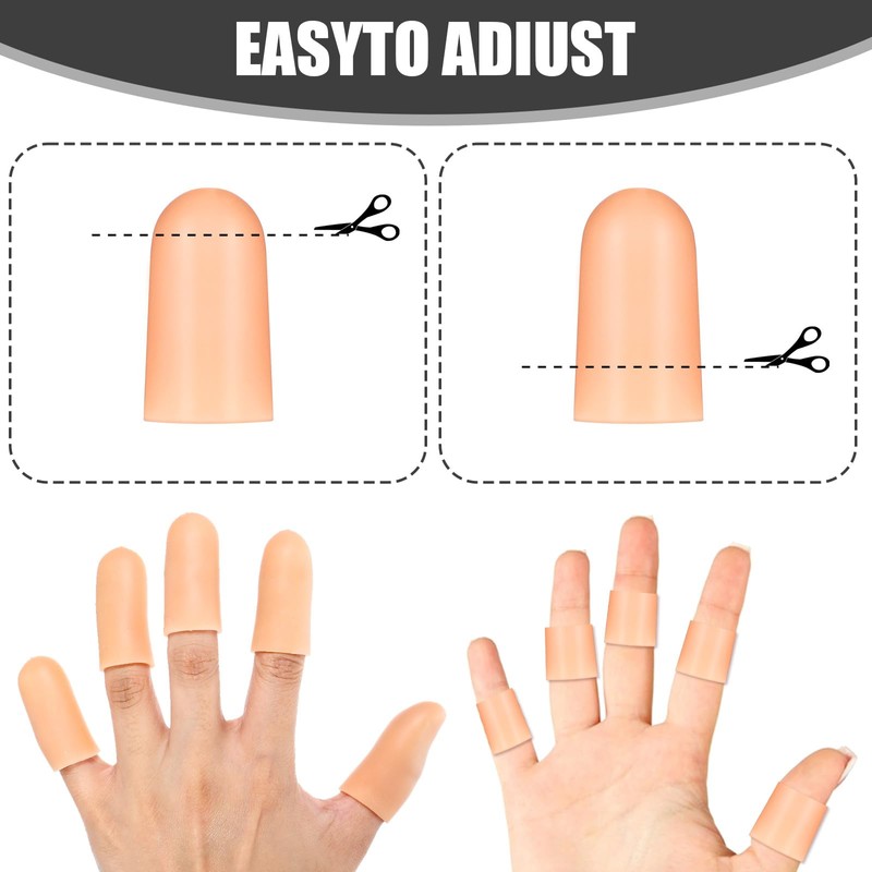 - 【Comfortable Material】Gel finger cots are made of high-quality elastic material, and finger protector guards provide you with a skin-like fit experience. The soft material will not hurt your fingers, and the gel thumb cover provides comprehensive protection for your fingers
