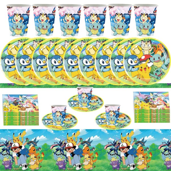 Ptydecta Birthday Party Set, Birthday Decoration, Plates, Cups, Tablecloth, Birthday Napkin, Suitable for 10-20 People (C)