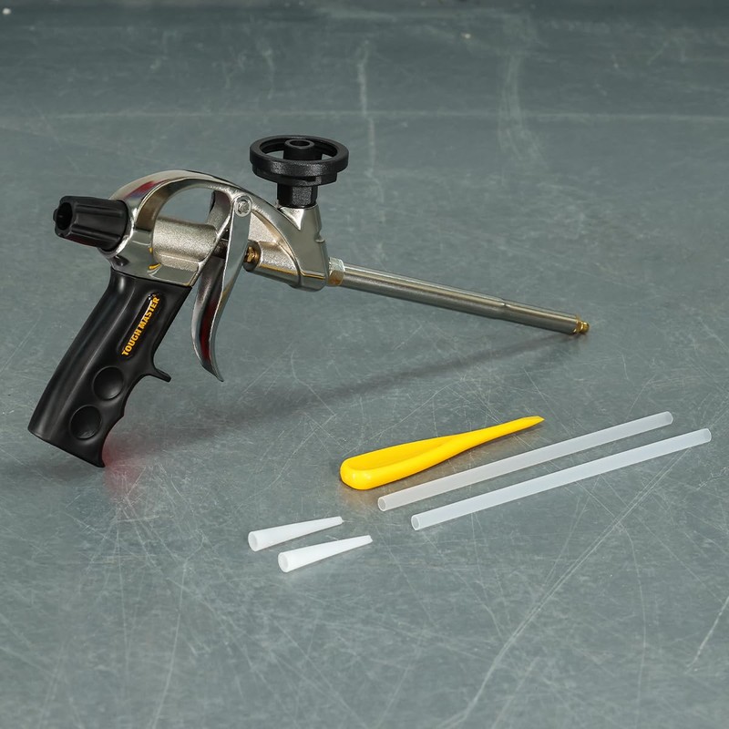 PU Foam Gun Professional Foaming Gun, Stainless Steel Tube, Foam Flow Regulator, Convenient Trigger, Comes with 2X Nozzles, 2X Extension Tubes 1x Foam Applicator Gun TOUGH MASTER