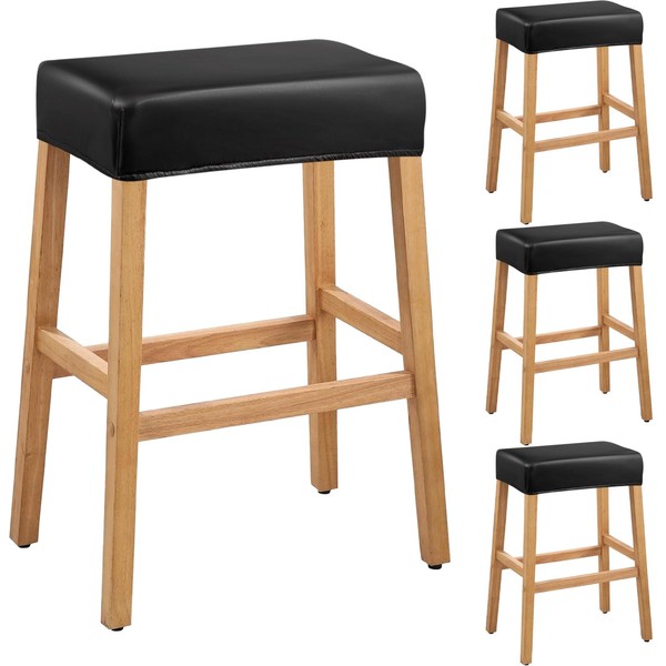 PU Leather Bar Stool Covers Rectangular, 100% Waterproof Stool Covers Rectangle Super Stretch 20% Thicker Leather Saddle Stools Cover Rectangular Counter Bar Stools with Elastic Band (4 PCS, Black)