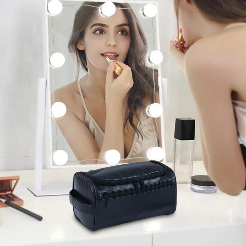 - Waterproof Quality: Lift your travel game with this reusable and long-lasting Travel Toiletry Bag for Men. With its spacious storage and waterproof, anti-scratch properties, this excellent bag is crafted from soft PU leather, brass, and metal materials for ideal durability and convenience