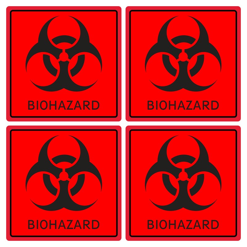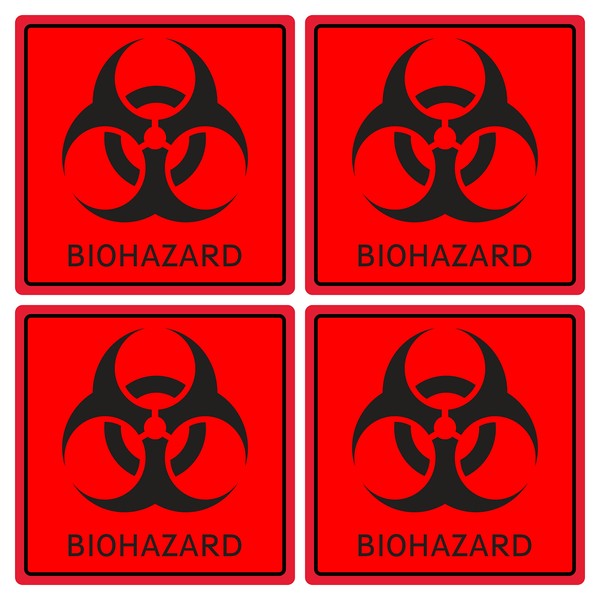 pubblimania BIOHAZARD Sticker Square for Outdoor Use - Indoor (4 Biohazard Stickers)