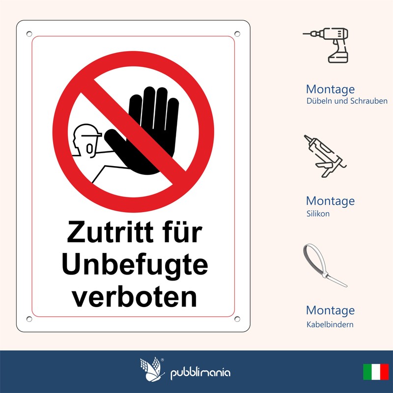 Pubblimania Zutritt für Unbefugte verboten Sign 30 x 20 cm Aluminium Composite Panel 3 mm Thick (1 Entrance for Unauthorised Persons Prohibited)