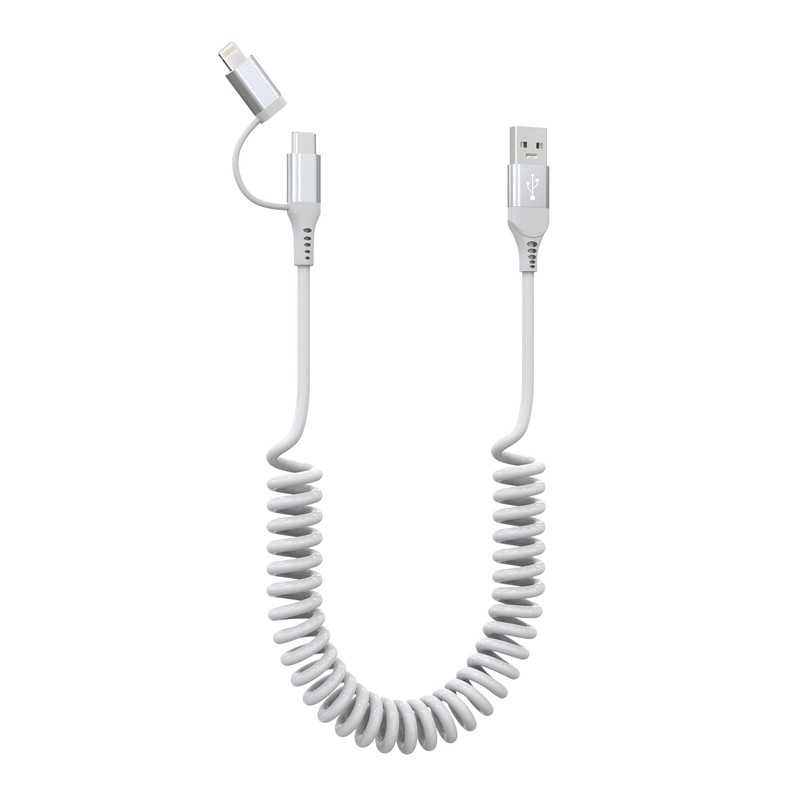 - Anti-Tangle & Portable: The usb to lightning and usb-c cable combo is engineered with a thicker smooth PVC exterior. Up to 30X more durable than ordinary cables, that don't get frayed or tangled. Also, coiled usb c and lightning cable 2 in 1 can be stretched to a suitable length and automatically recover again, not taking up your space