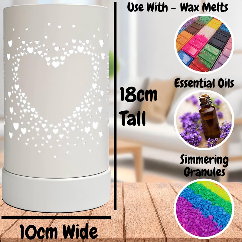 Puddle of Wax - 18cm LED 7 Colour Changing Electric Wax Burner for Wax Melts & Essential Oils - Stylish Heart Design - Metal Case & Glass Dish - UK Plug - Available in Black or White (White)