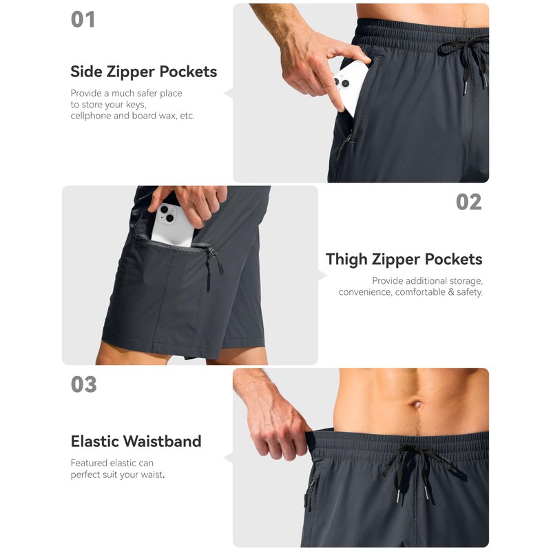 Pudolla Mens Board Shorts 9" Quick Dry Beach Shorts with 4 Zipper Pockets Bathing Suit Swim Trunks for Men(Steel_Grey M