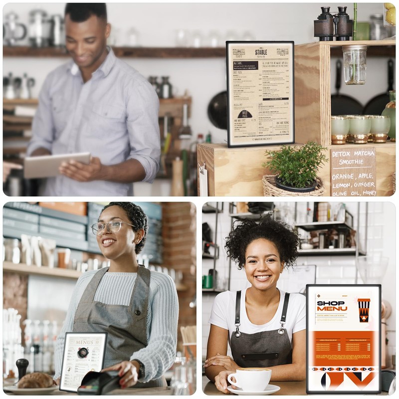 - Flexible Placement Options: Wall-mounted or table sign, adjustable viewing angles and dual orientation (portrait/landscape)