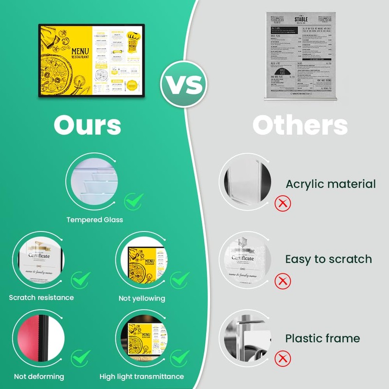 - Standard US Sizes: Fits 8.5x11 inch and 11x17 inch posters for menu boards, table signs, and event displays