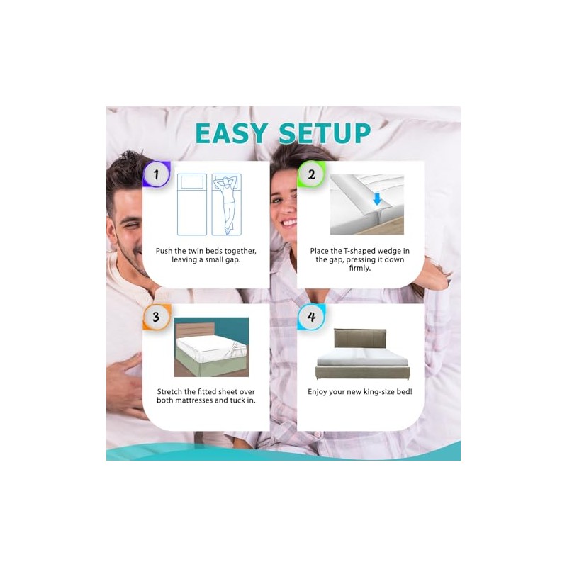 Puente de cama 2 en 1 de tamaño individual a King con sábana adjunta, relleno de huecos de cama y convertidor de cama individual a King (patente pendiente)