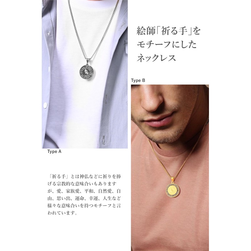 Puente Necklace, Men's, Women's, Stainless Steel, Maria Necklace, Coin, Medal, Coin Necklace, Mysterious Medal, Worship, Playing Hands, Praying Hands, Chain Necklace, Silver, Gold, Stainless Steel, No