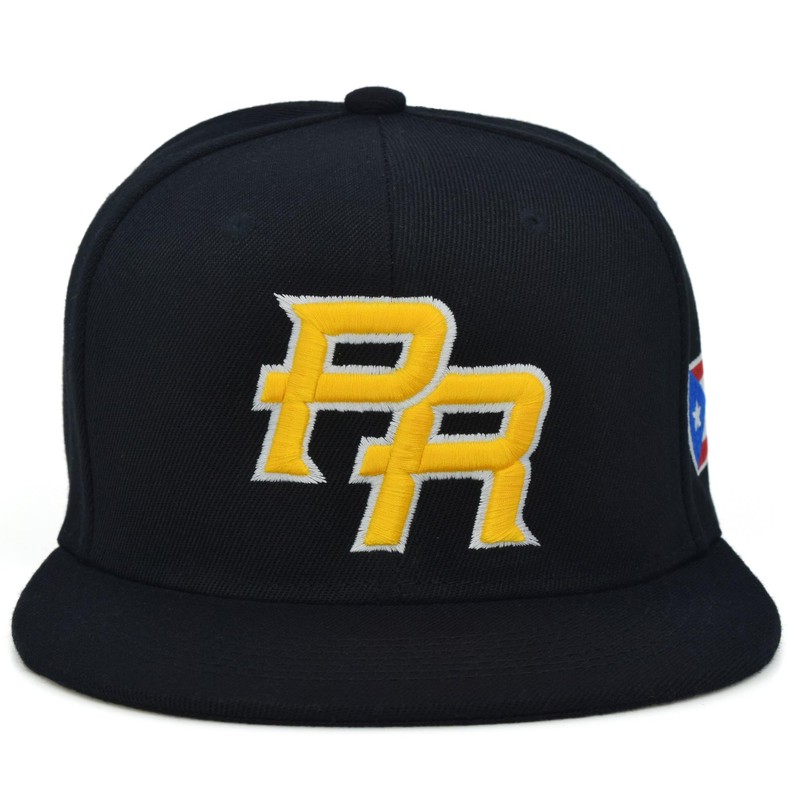 Puerto Rico Snapback Hat US Embroidery Flag 3D PR Flat Bill PR Baseball Cap (Black - Gold White)