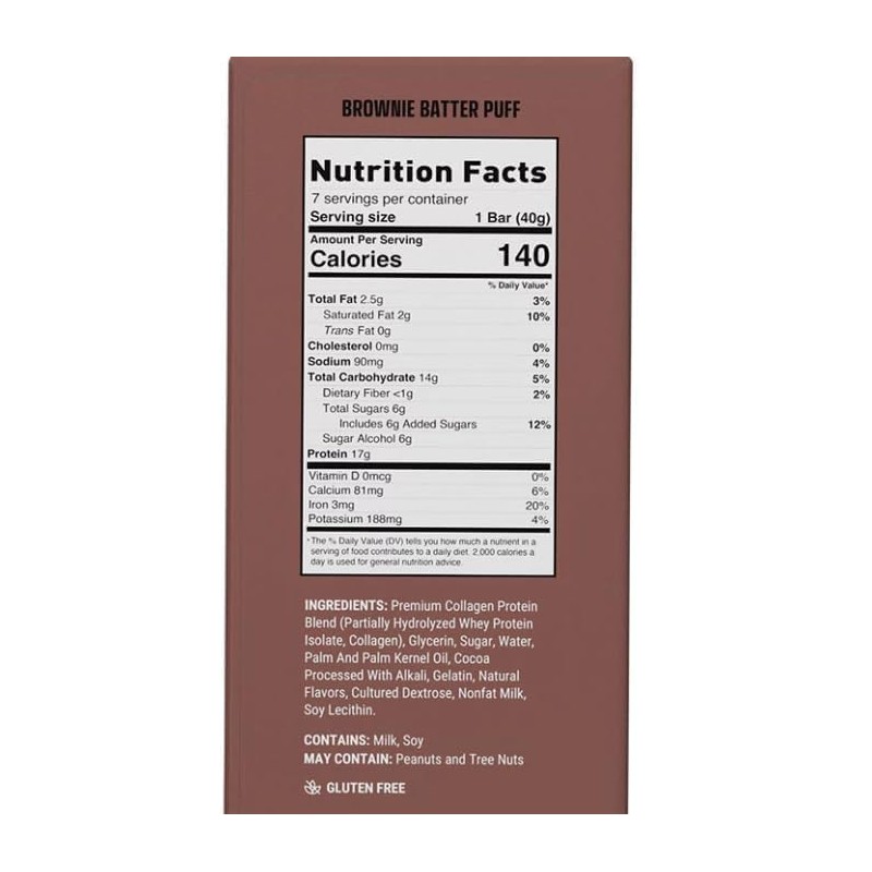 - Indulge in a delicious puff bar, chewy dessert-like bar packed with premium collagen protein