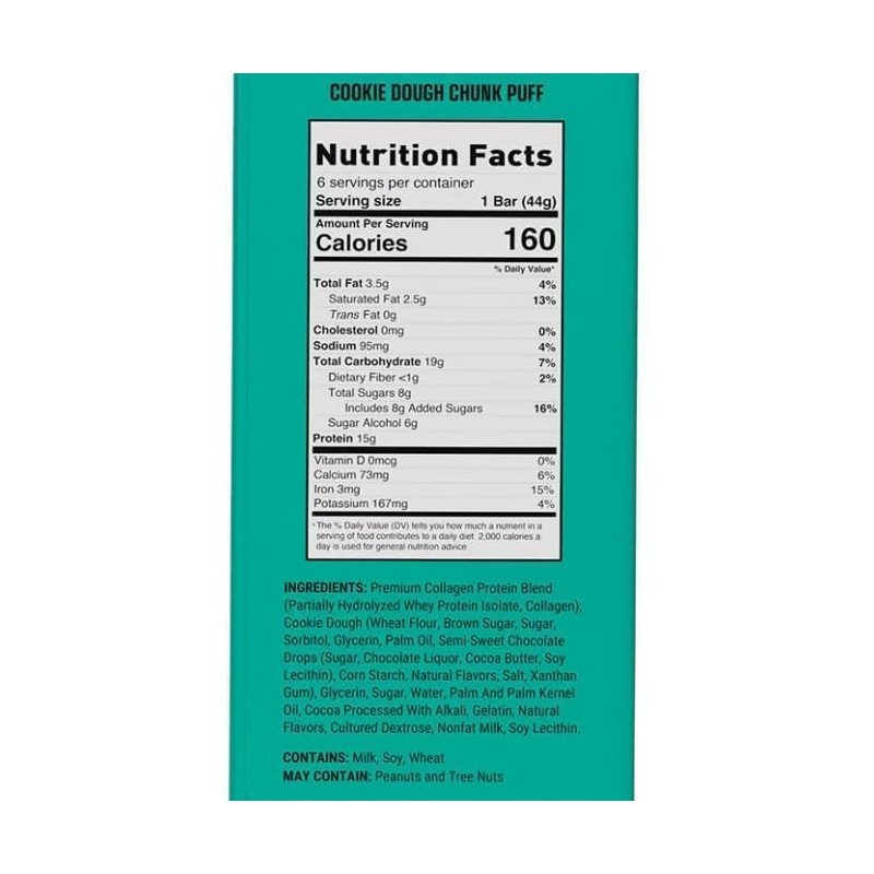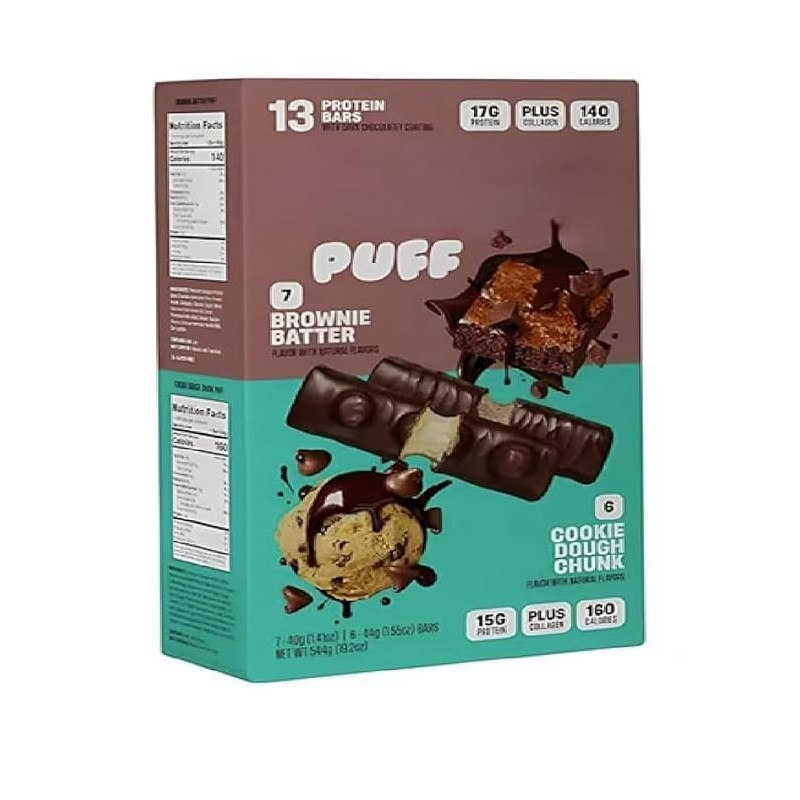 - Bar Puff & Chunk Protein Bars, Variety Pack, 13 bar variety pack flavors included: Cookie Dough Chunk & Brownie Batter