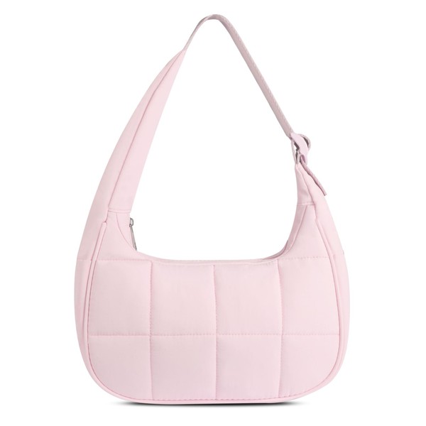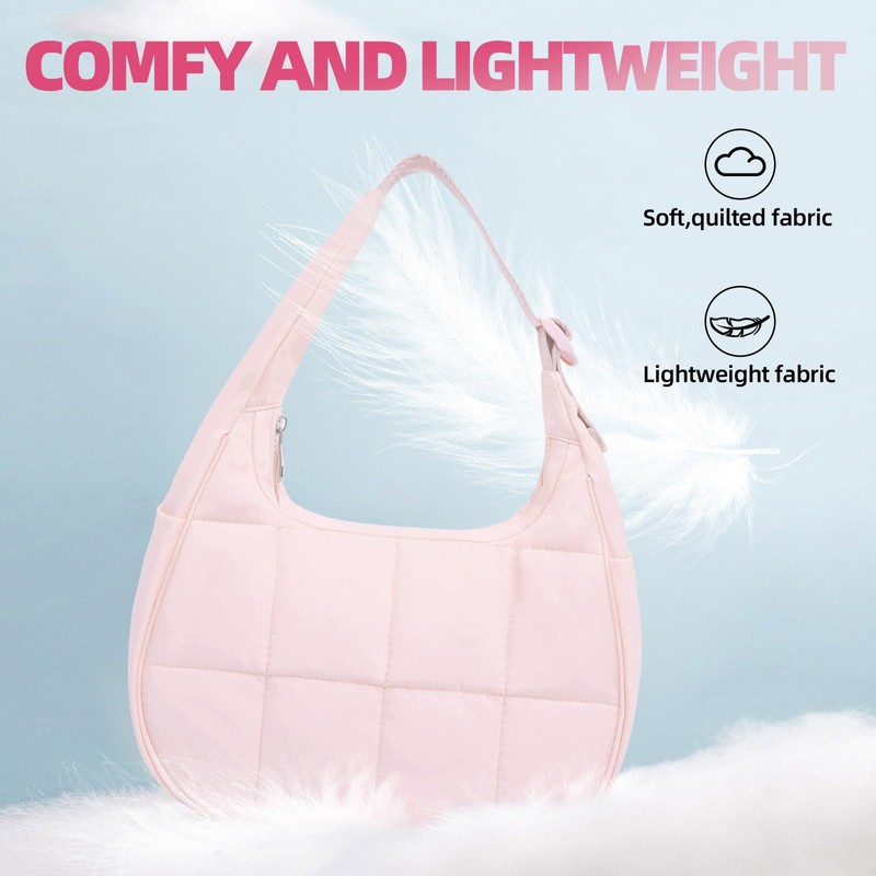 Puffer Crescent Shoulder Bag for Women, Quilted Purses for Women, Quilted Shoulder Purses with Adjustable Strap (Pink)
