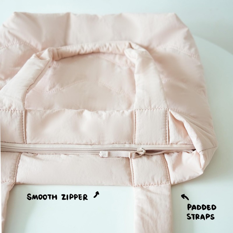 - VERSATILE USE: With its minimalist design and attractive color options in pink, black, and ivory, this puffy tote bag serves a variety of purposes. It’s ideal as a shopping bag, work bag, university tote, laptop briefcase, travel duffel, overnight weekender, teacher’s handbag, toddler diaper bag, or a nurse tote.