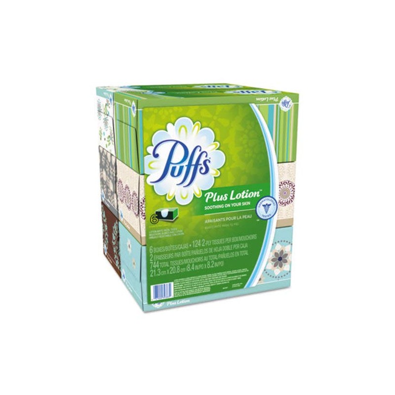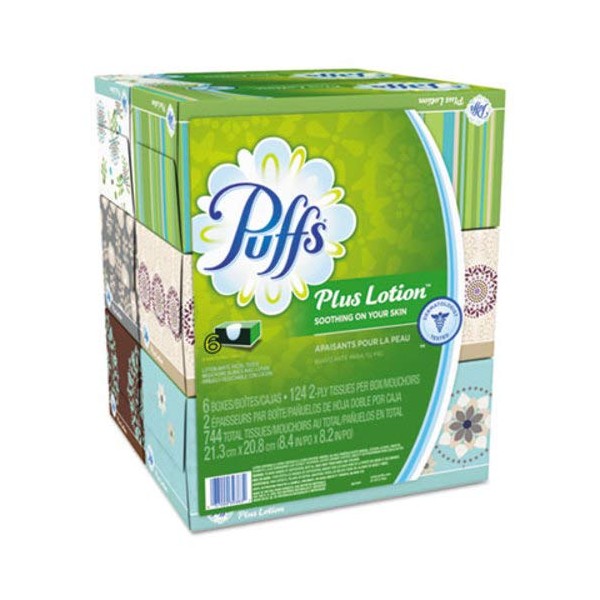 Puffs 137961 Plus Lotion Facial Tissue 2-Ply 124 Sheets/Box 6 Boxes/Pack (39383)