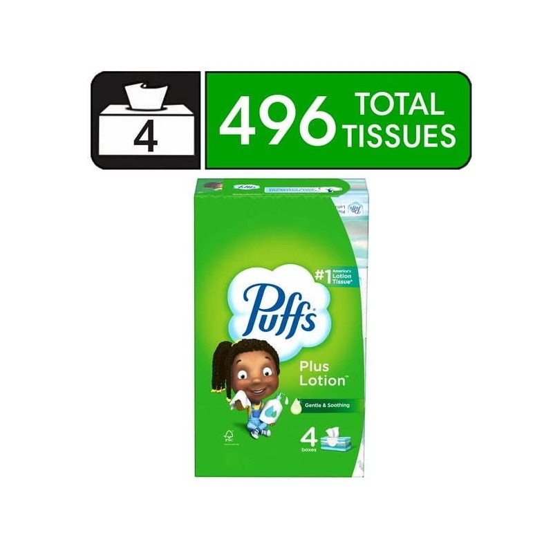Puffs Plus Lotion Facial Tissues, 4 Family Box, 124 Tissues per Box
