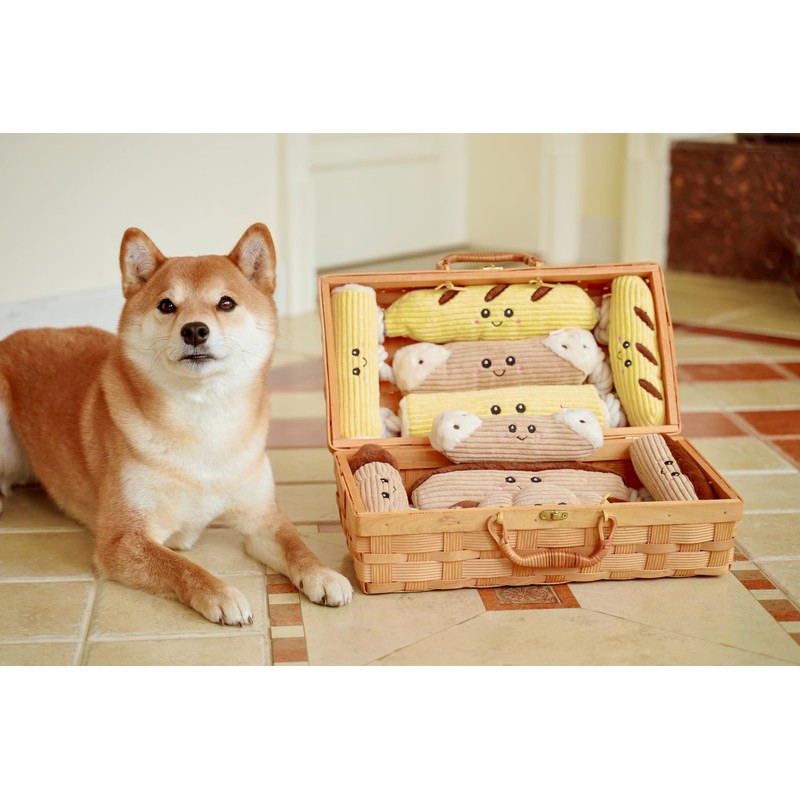 Puffy Crew Squeaky Dog Plush Toy, Bakery Bite_Stick Collection, 12", for Various Sized Dogs (Swiss Roll, Large)