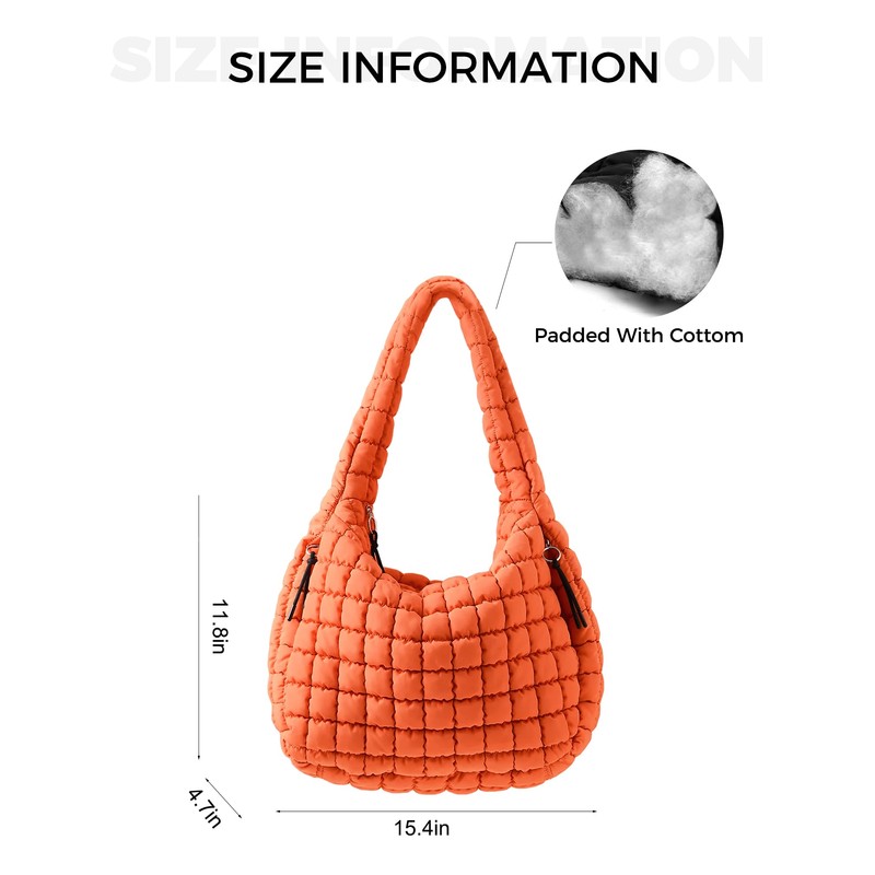 Puffy Tote Bag Large Quilted Carryall Puffer Shoulder Bag Lightweight Quilted Padding Hobo Bag Quilted Bag Orange