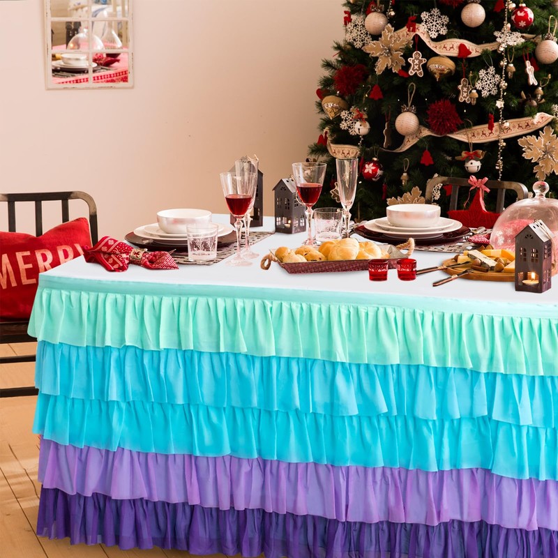 Pufogu 6ft Mermaid Tutu Table Skirt, Tutu Ruffled Tablecloth for Rectangle Table Birthday Party, Table Decorations (L 6ft, H 30in).