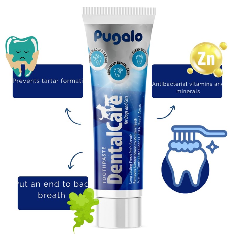 - Pugalo’s Toothpaste is designed for pets, ensuring their teeth stay clean and healthy. The gentle formula protects against cavities while keeping their gums safe. It is ideal for regular use and helps maintain a long-term healthy mouth