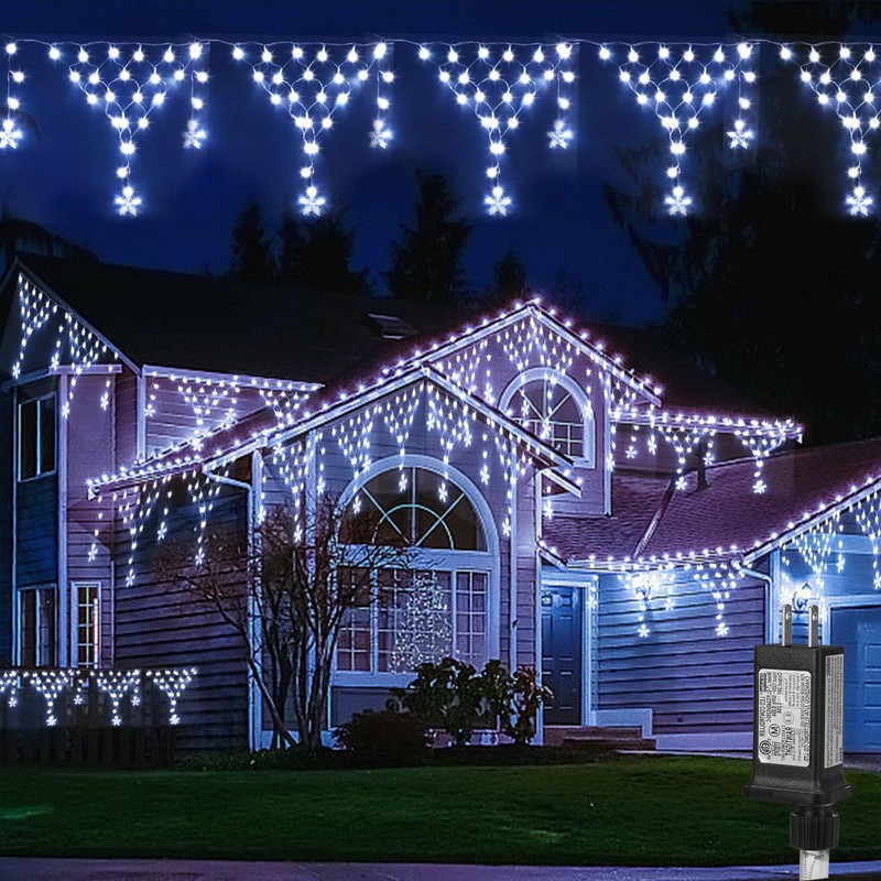 PUHONG Christmas Lights Outdoor, 218 LED 13.8ft 8 Modes Fairy String Lights with 12 Drops, Plug-in Christmas Twinkle Lights for Wedding, Party, Eaves, Christmas Yard Decorations - White