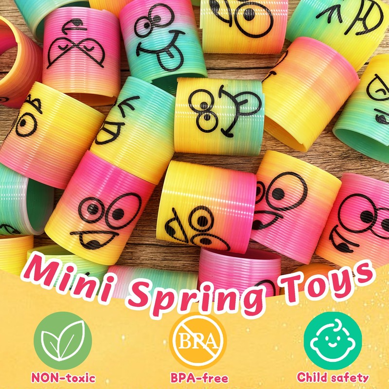 - Great for Kids Party Favors: These fun mini spring toys are the perfect companion for carnival prizes, classroom rewards. The spring toys perfect for party favors for kids boys girls, birthday party favors,rainbow party favors,goodie bag stuffers, Christmas stocking stuffers, Easter basket stuffers, treasure box prizes,teacher supplies,Halloween goodie bag fillers and much more.Great souvenirs for kids boys girls and adults