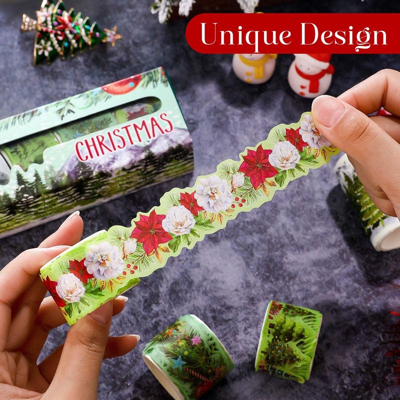 • Unique Design: Featuring a stunning design of cute Christmas trees, beautiful poinsettia flowers, and other classic Christmas patterns, this washi tape set captures the essence of the holiday season and adds cheer to any project.