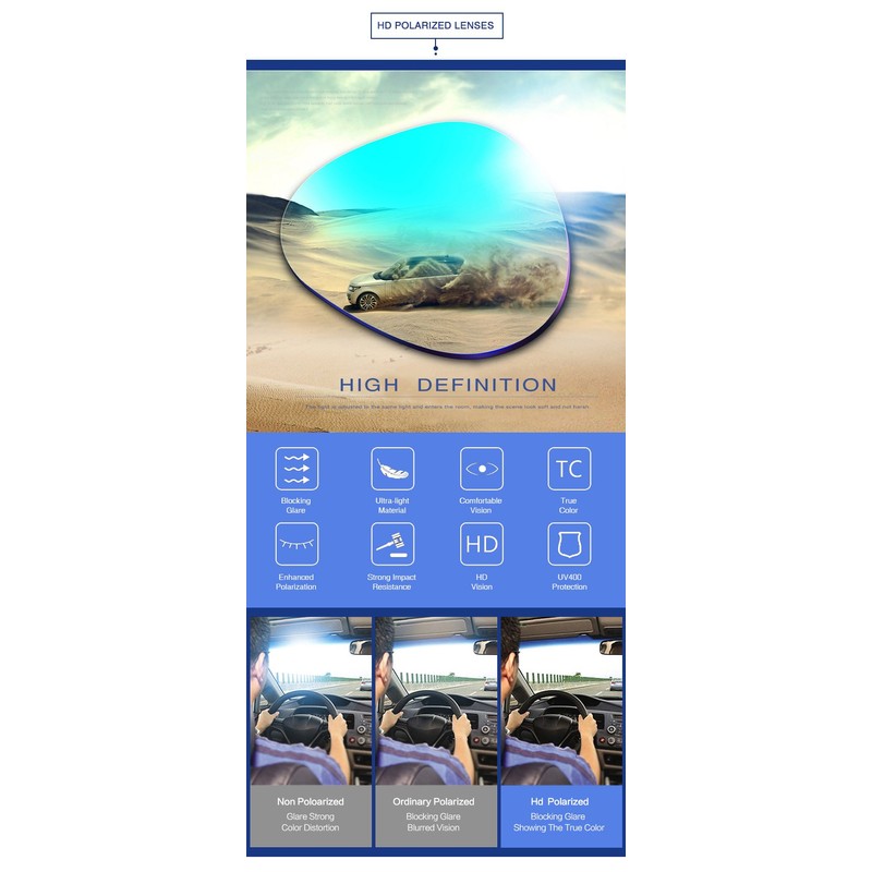 ► TAC material is still the most penetrating lens material up to now.It has the highest definition and will not distort the scenery.