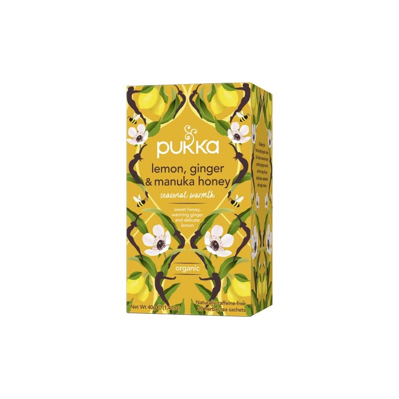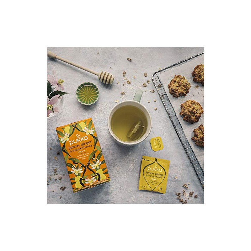 A deeply soothing, traditional blend of zesty lemon and spicy ginger with sweet, nourishing notes of manuka honey. This tea is made from ripe, organic lemons and ginger root that we have slow-dried to capture their intense deliciousness. The oodles of fruity-spice are then blended with manuka honey to give a soothing, sweet finish. And, as with all Pukka teas, they are naturally organic and totally free from artificial flavourings. I hope you enjoy it, Sebastian PoleMaster Teasmith