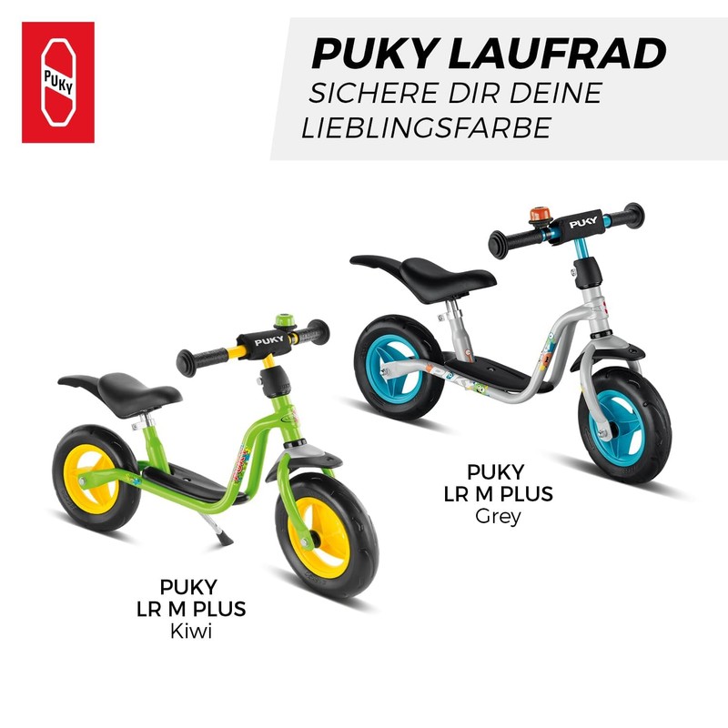 • Puky LR M Plus balance bike for children from 2 years or with a stride length of 30 cm, this walking bike is suitable in kiwi. The first attempts are successful. Now the first driving tests can follow. The Puky LR M balance bike helps with this. A great balance bike that will give your child a lot of joy. Equipped with special wheel saddle, high-quality soft tyres and many other components. Side stand, cool mudguards and play bell can be