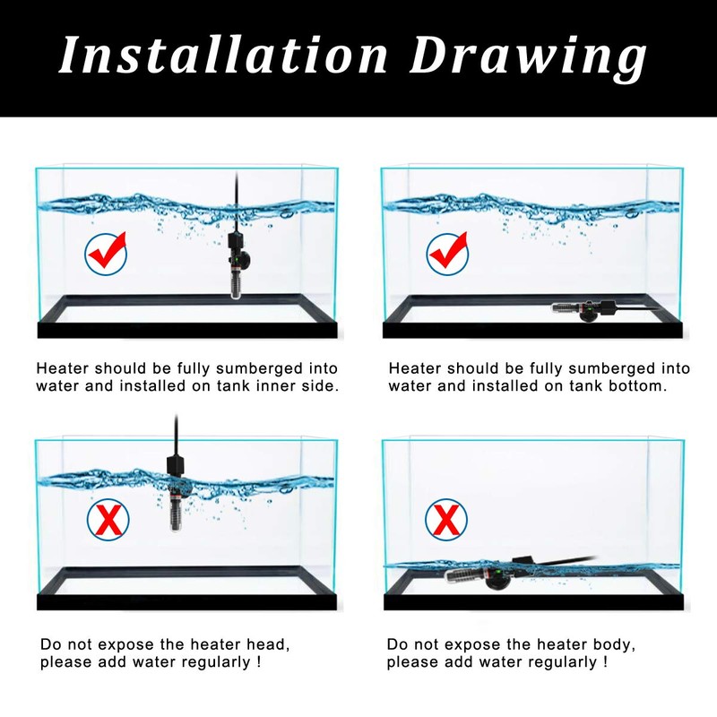- ★【SATISFACTION GUARANTEED】Our Aquarium Heater is built with durability in mind and safety for every design. In the remote possibility that you’re not satisfied with our product, just contact us, and we will gladly give you a new Aquarium Heater replacement. 12 Month Warranty and 24 Hour Professional After-sales Service.