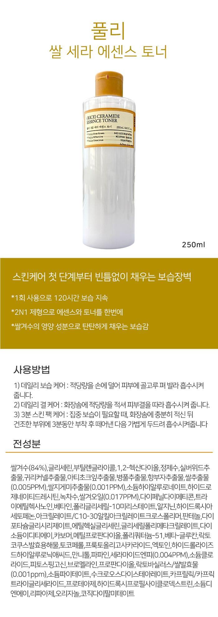 풀리 풀리 쌀 세라 에센스 토너 보습 장벽 토너 1개 250ml