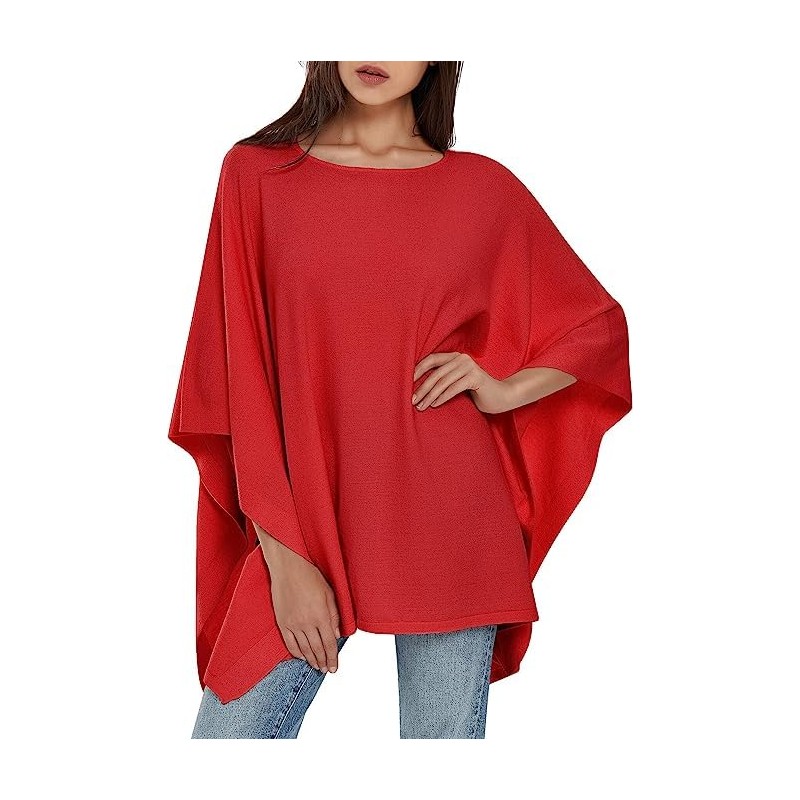 PULI Women's Pullover Poncho Elegant Viscose Knitted Loose Fitting Poncho Scarf, red