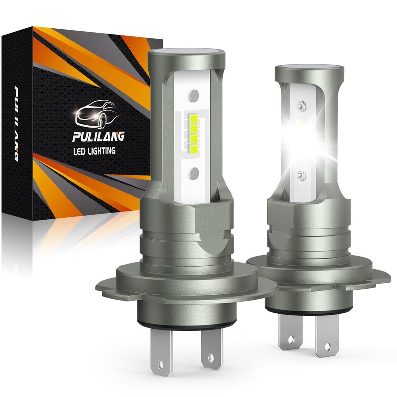 - 【EXCELLENT VISIBILITY, SAFER DRIVING AT NIGHT】Pulilang H7 led headlight bulbs equipped with high power LED chip, 6500K cool white up to 55W 12000LM per pair, provides 1200 feet lighting range, 3 times clear light output compared to halogen bulbs, making signs and obstacles can be seen clearly, for greater safety and security on the road. This Led h7 bulb is a perfect replacement for halogen bulbs and offer better visibility